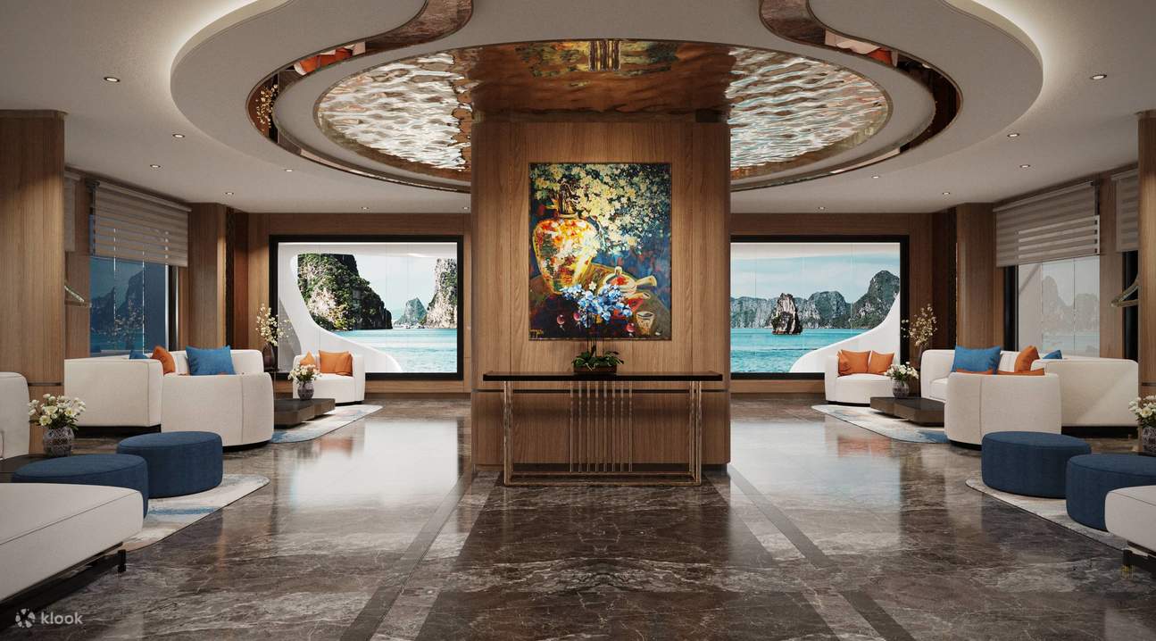 Azura Cruise ofrece a sus huéspedes un viaje de cinco estrellas por el paraíso de la bahía de Lan Ha. La travesía comienza en el puerto, llevándolos a través de cientos de majestuosas islas de piedra caliza y visitando destinos emblemáticos como las cuevas de la Luz y la Oscuridad, la serena zona de Tra Bau y playas vírgenes. Los huéspedes pueden disfrutar de kayak, natación, explorar pueblos pesqueros o simplemente relajarse en la cubierta mientras contemplan una puesta de sol impresionante.